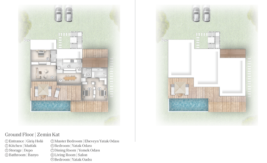 – Нижний этаж – Стоимость кв. метра: $5.000 – Площадь: 320 м2 – Терраса 16 м2 – Частный сад